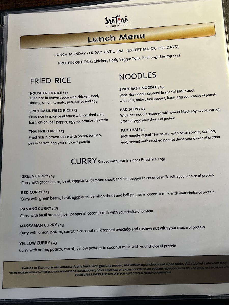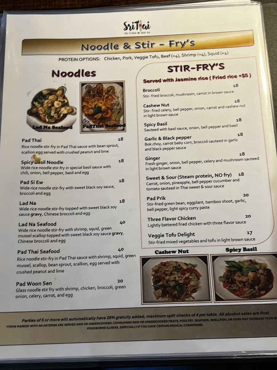 Glass noodle, shrimp, ground chicken, squid, cucumber, tomato, carrot, celery, cilantro, red onion, green onion mixed with srithai hot & sour sauce